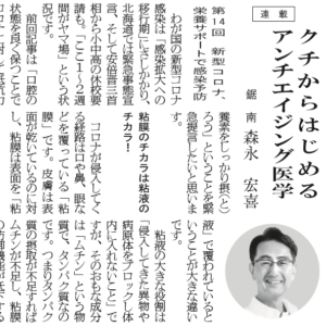 2020年3月6日 医院活動記録 2020年3月6日 森永歯科医院 「新型コロナ、栄養サポートで感染予防」房日新聞連載記事(第14回)を公開 2020年3月6日付の地元紙「房日新聞」に掲載された連載記事です。 下記よりDLできます。 新型コロナ、栄養サポートで感染予防