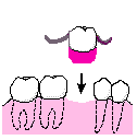 前後の歯を削って、あいだに人工の歯を入れて橋をかけます。
